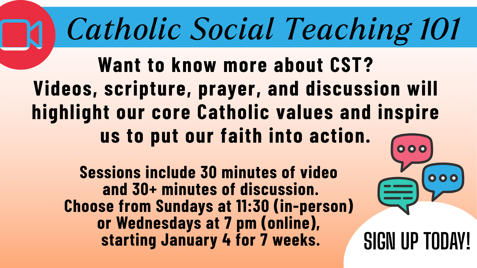Here are the links for this Wednesday, January 21, starting at 7pm. This session will cover Care for God's Creation.